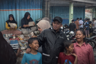 “Kami sangat terbantu. Rumah masih kebanjiran, mau masak juga sulit. Dengan adanya makanan dari MBG ini, kami sekeluarga bisa makan tanpa harus bingung mencari bahan makanan,” ujar Komariah.